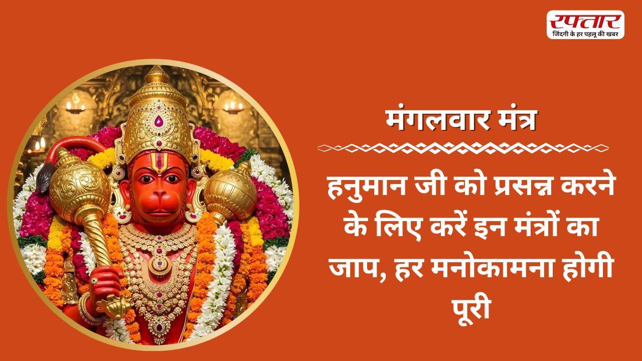 नई दिल्ली रफ्तार डेस्क। मंगलवार का दिन हनुमान जी की पूजा अर्चना करने के लिए शुभ माना जाता है। जो जातक ऐसा करते हैं उनके घर में सुख समृद्धि अथवा तरक्की बनी रहती है। आज के दिन भगवान के कुछ विशेष मंत्रों का भी जाप कर सकते हैं। इससे आपके घर परिवार में सुख समृद्धि आती है और चारों तरफ से सफलता आपको प्राप्त होती रहती है।