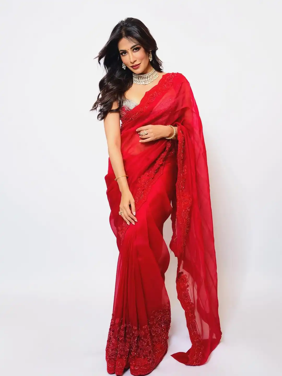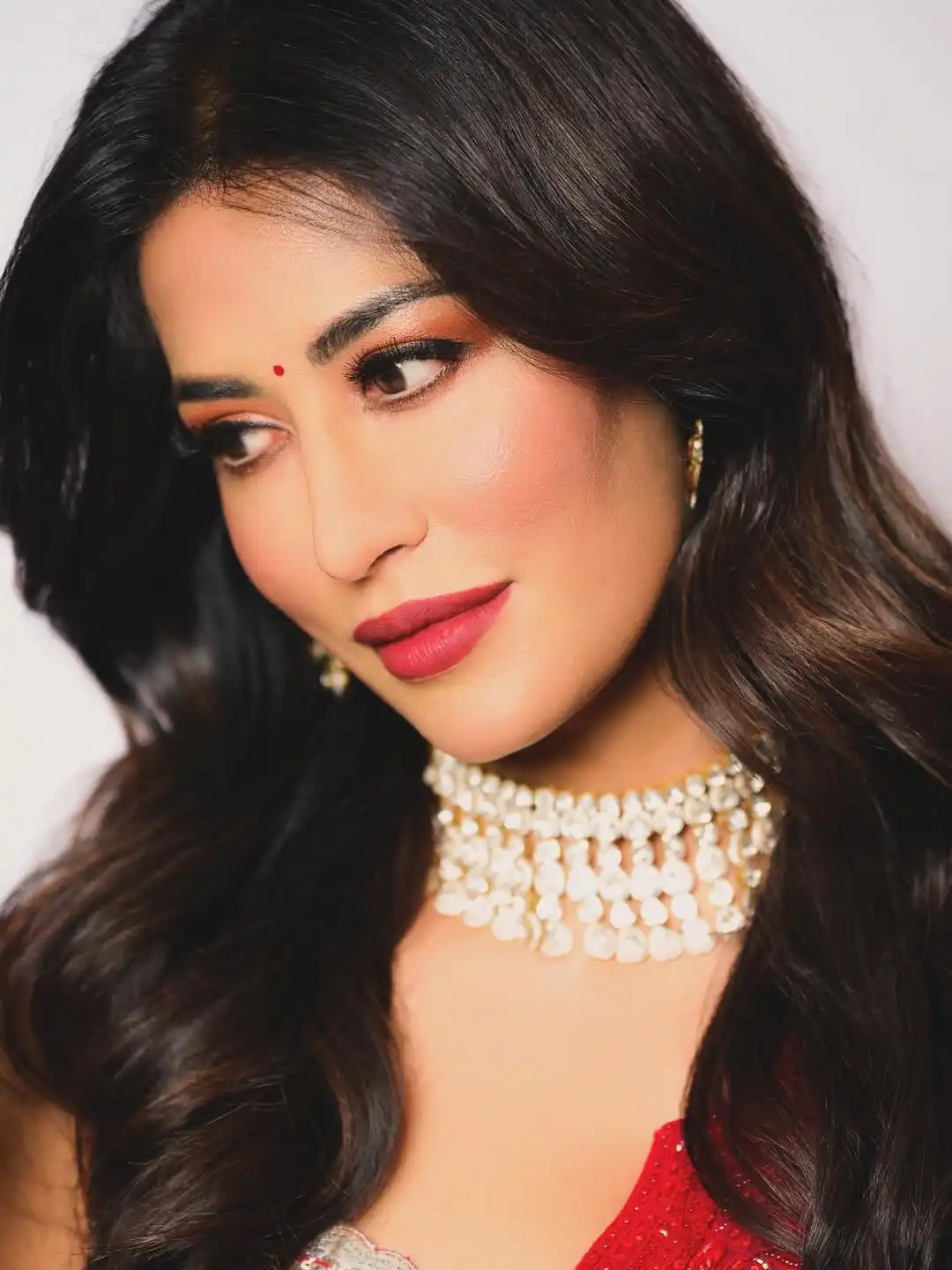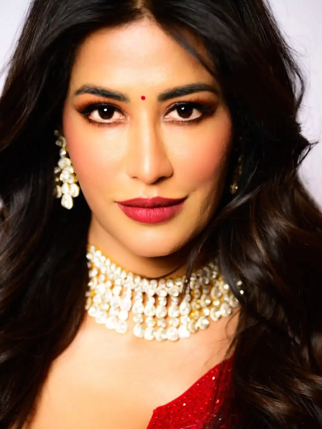चित्रांगदा सिंह ने इस फोटोशूट में रेड साड़ी के साथ शानदार हार पहनकर अपने लुक को और भी बोल्ड और एलीगेंट बनाया है।